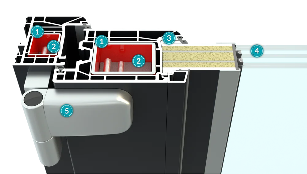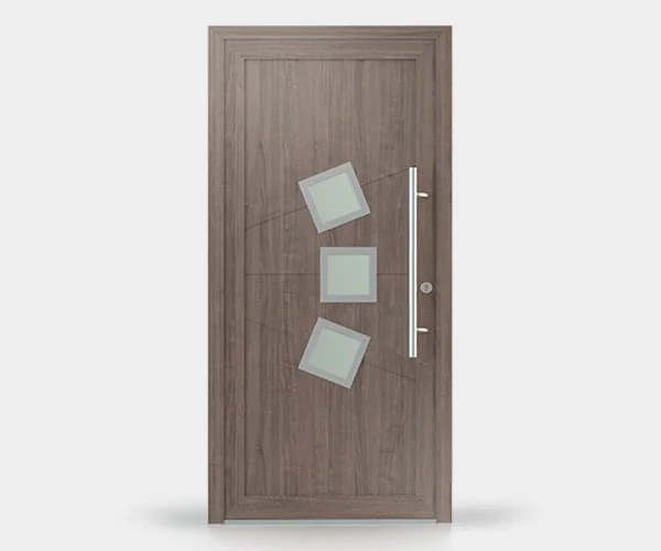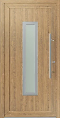 Drzwi na bazie profilu Veka SoftLine 82 z wypełnieniem wsadowym Veyna, wyposażone w 4-ro kieszeniową zasuwnicę hakową. Drzwi posiadają certyfikat na antywłamaniowość w klasie RC2.
